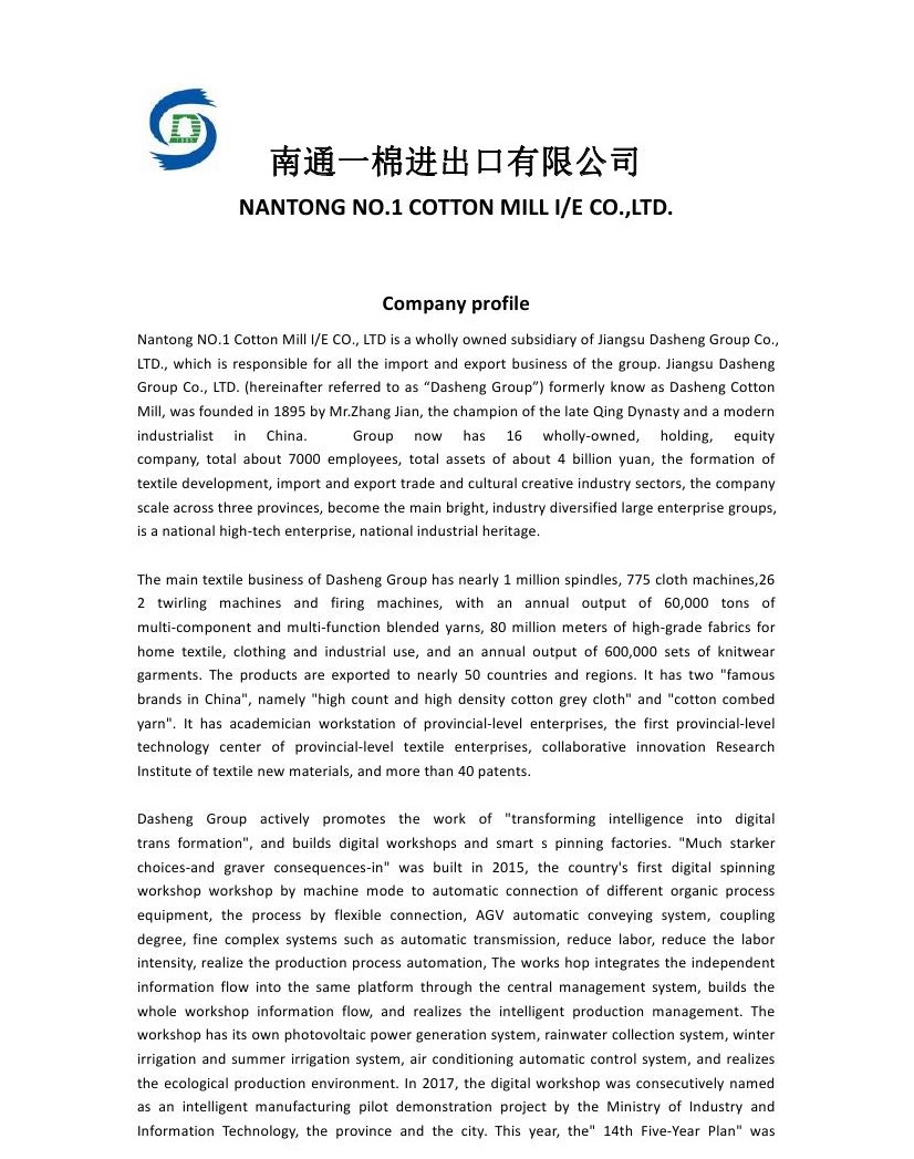 NANTONG NO.1 COTTON MILL I/E CO.,LTD.(南通一棉进出口有限公司)