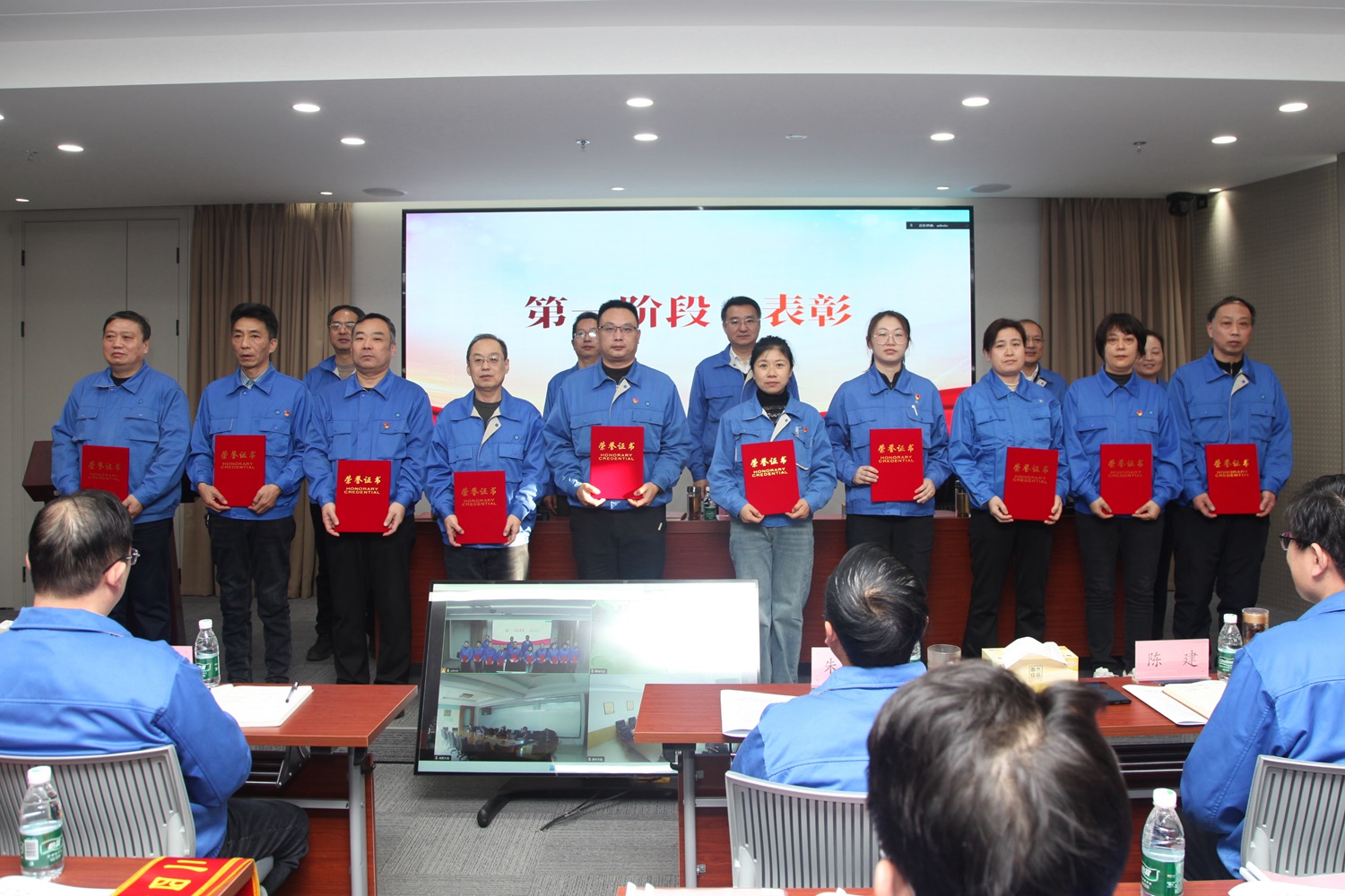 1月18日上午,0638太阳集团官网在二楼多功能会议室召开2024年度表彰会,对2024年集团公司涌现出的优秀集体和先进个人进行表彰。集团公司党委副书记、工会主席盛燕兵主持会议,领导班子全体成员出席会议。 会上,党委书记、董事长漆颖斌宣读《关于表彰2024年度综合考评优秀中层管理人员的通知》,领导班子成员为获奖个人一一颁奖、予以表彰。 党委副书记、总经理包卫东宣读《关于表彰2024年度先进集体(班组)、优秀员工、十佳标兵的决定》,领导班子成员为获奖集体和个人一一颁奖、予以表彰。 为总结推广经验,推进设备维保人才的集约化管理,集团公司研究决定,命名成立戴强工作室、韩保林工作室,会议现场举行授牌仪式,董事长漆颖斌、总经理包卫东分别为戴强和韩保林工作室授牌。 集团公司各单位部门负责同志、职工代表、受表彰的先进个人及集体代表等干部员工参加会议。