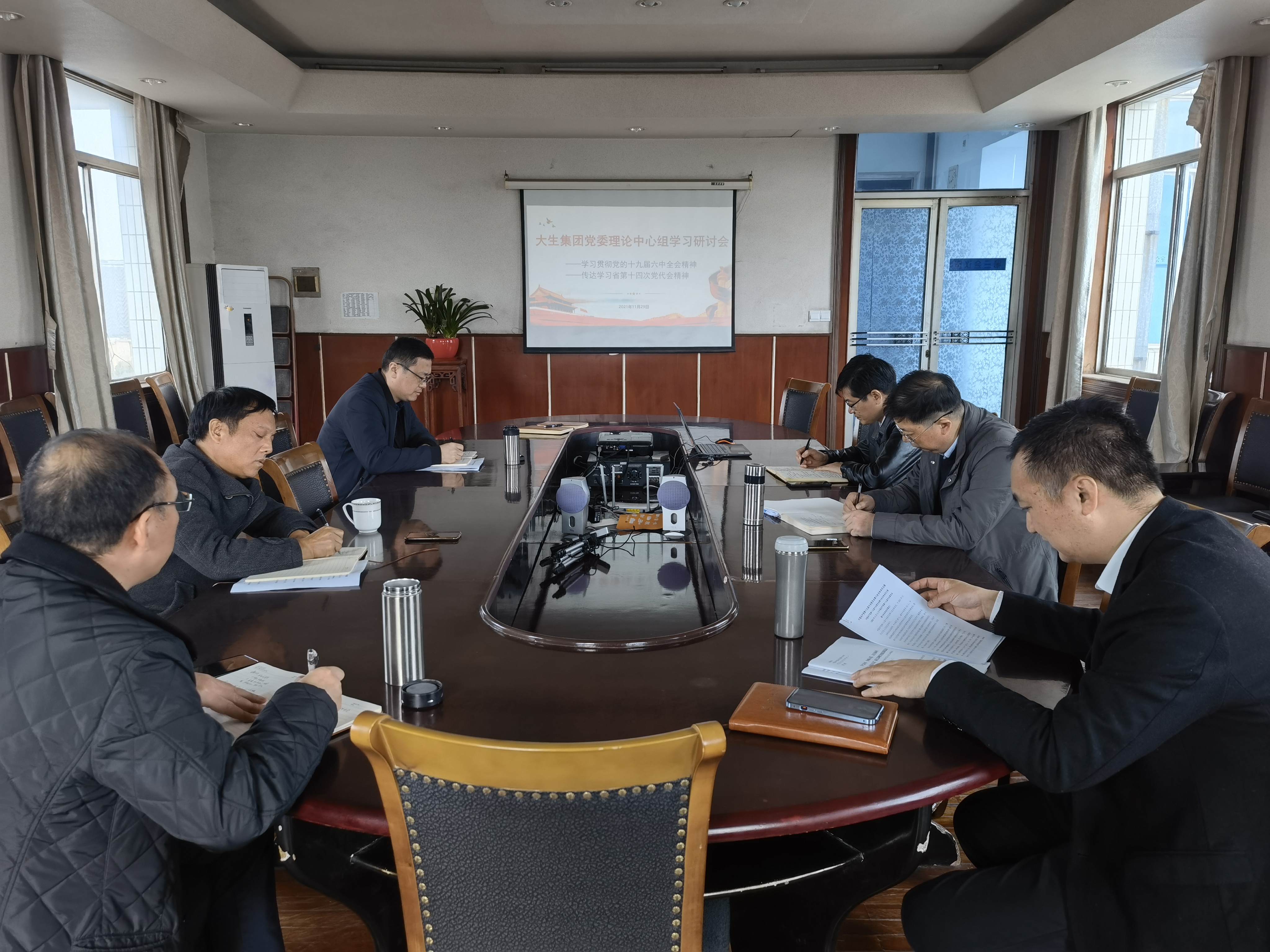 11月29日上午,0638太阳集团官网党委召开理论中心组专题学习研讨会,学习贯彻党的十九届六中全会精神、传达学习省第十四次党代会精神,集团党委书记、董事长漆颖斌主持会议,集团党委委员参会并交流发言。