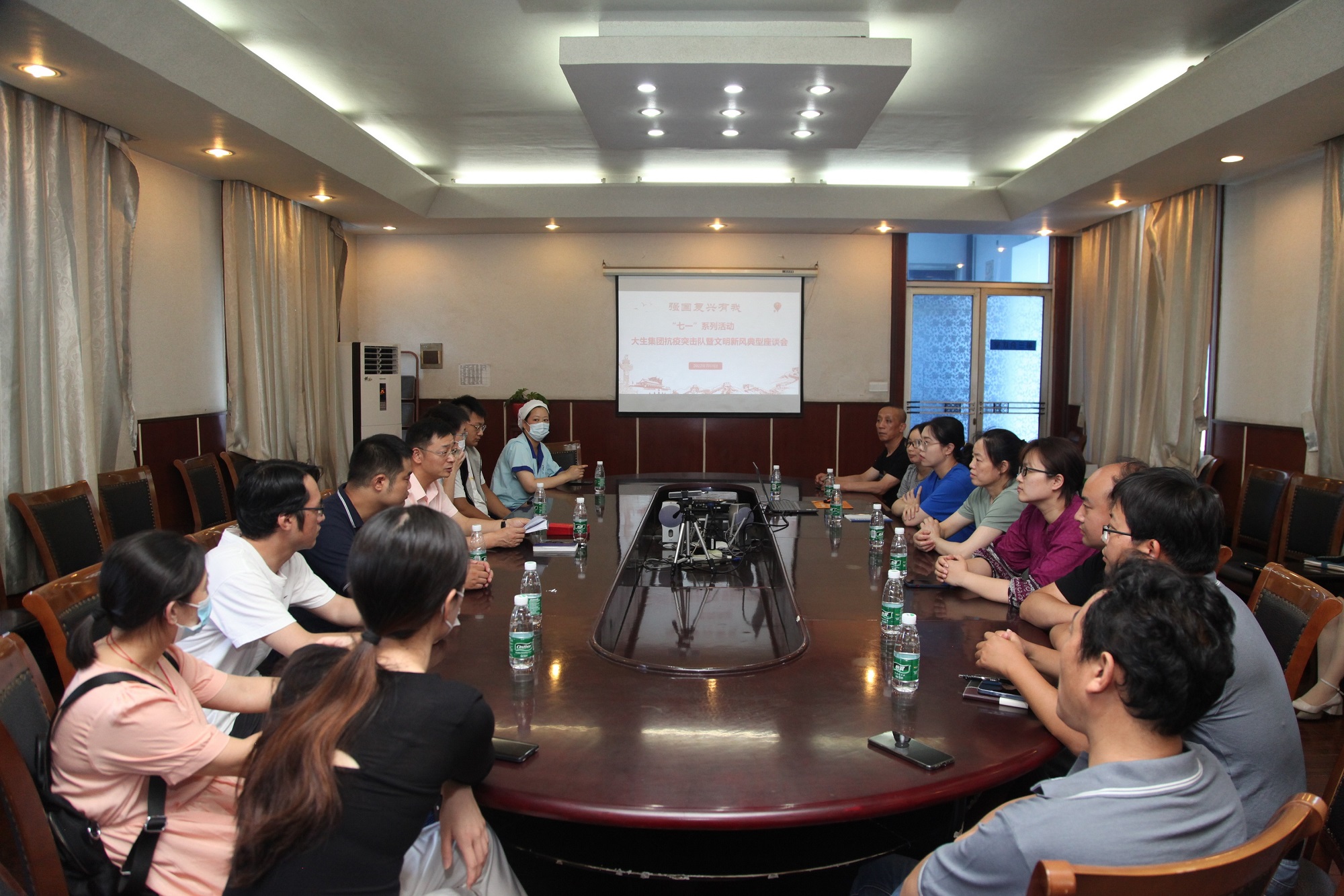 7月1日上午,0638太阳集团官网召开了集团抗疫突击队暨文明新风典型座谈会,部分抗疫志愿者、突击队代表以及文明新风典型参加会议。集团党委副书记、工会主席张启祥主持会议并讲话。