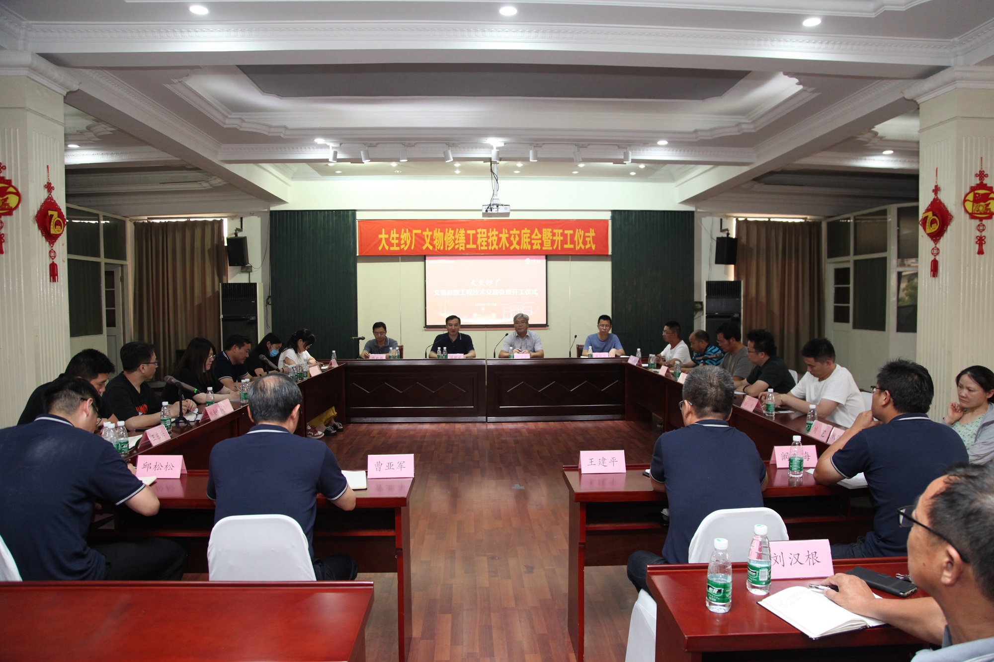 7月12日,0638太阳集团官网纱厂文物修缮工程技术交底会暨开工仪式在集团多功能厅举行。市文广旅局副局长倪益新,集团公司党委书记、董事长漆颖斌,市文物处处长姜振华,设计单位、施工单位、监理单位代表及相关技术人员参加了会议。集团党委副书记、工会主席张启祥主持开工仪式。