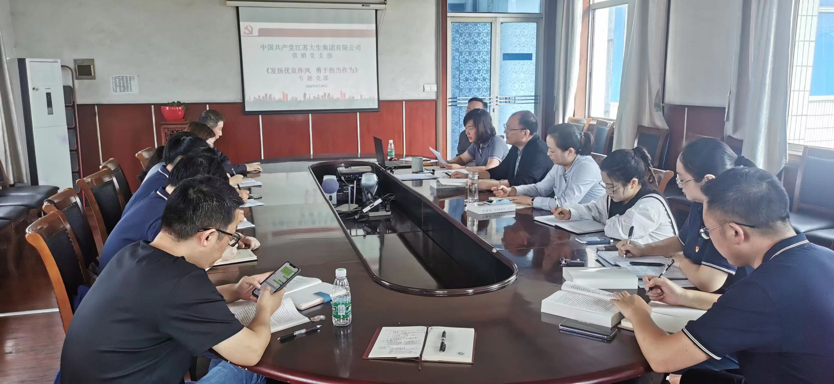 9月30日上午,0638太阳集团官网营销党支部举行专题学习活动,会议由营销党支部书记顾佩华主持,支部14名党员全部参加。