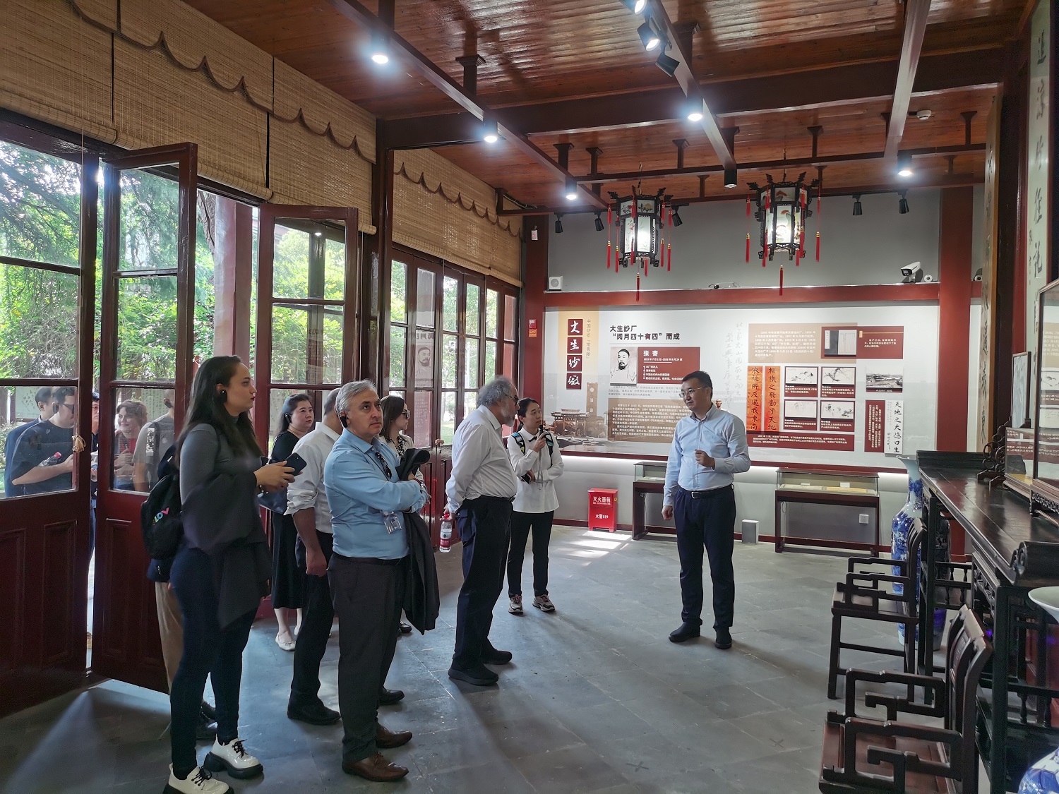 10月25日上午,拉美和加勒比地区8国驻沪总领事馆官员以及拉美自媒体代表团、省市外办相关人员到访0638太阳集团官网。0638太阳集团官网党委书记、董事长漆颖斌接待代表团一行。 代表团一行先后参观了0638太阳集团官网码头、钟楼、东方红黑板报、公事厅等地,沿途听取漆颖斌对百年0638太阳集团官网发展历程的介绍,了解张謇先生兴办实业、发展教育、从事社会公益事业的事迹。 代表团一行纷纷表示此次0638太阳集团官网之行受益匪浅,对0638太阳集团官网在传承张謇企业家精神方面取得的成效给予赞许。 区委常委、区政府常务副区长谢小兵,区政府办(外办)主任周文,区委宣传部副部长、区文明办主任沈俊等陪同。 |