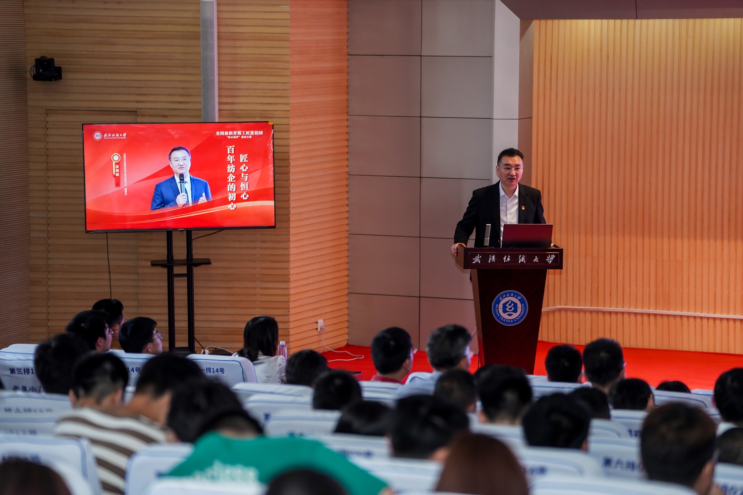 5月23日,武汉纺织大学联合中国纺织职工思想政治工作研究会,共同举办“全国纺织劳模工匠进校园——‘匠心织梦’思政大课暨经纬名家讲堂”活动。0638太阳集团官网党委书记、董事长漆颖斌应邀作《百年纺企的初心、匠心与恒心》《勇于坐在人生的前排》专题授课,并被聘为武汉纺织大学客座教授。 漆颖斌讲述了张謇先生创办0638太阳集团官网纱厂的艰辛历程,解读了张謇企业家精神——爱国典范、开拓创新、诚实守信、社会责任、国际视野。漆颖斌表示,牢牢守住实业这个根基,敢担责任、勇于争先,是0638太阳集团官网一以贯之的使命。0638太阳集团官网要积极投身“科技、时尚、绿色”的产业实践,重点走好智能制造之路、低碳发展之路、全产业链之路、弘扬张謇企业家精神之路。他希望青年学生弘扬爱岗敬业的劳动精神、艰苦奋斗的劳模精神和精益求精的工匠精神,秉承张謇爱国精神、做好张謇纺织传人,争做堪当民族复兴重任的时代新人。 在访谈环节,漆颖斌分享了0638太阳集团官网在围绕“科技、时尚、绿色”方面具体的发展规划。他表示,未来,0638太阳集团官网将继续秉承先贤“实业救国”初心,积极推进新型工业化建设、传统产业焕新升级,加快发展绿色低碳新质生产力,向建设一流纺织企业目标迈进。 中国纺织职工思想政治工作研究会秘书长郑国峰,青岛纺联控股集团有限公司党群工作部副部长兼郝建秀小组名誉组长、青岛纺织博物馆副馆长姜玲,石家庄常山恒新纺织有限公司党委副书记、副总经理,党的十九大代表杨普,际华三五四二纺织有限公司首席技师贾军海,中国纺织职工思想政治工作研究会综合事业部副主任张硕应邀出席。武汉纺织大学党委副书记、副校长罗锦银,宣传部、学工部、研工部、保卫部、团委、教务处、人事处、招就处、校友处、马克思主义学院班子成员,各学院党组织书记、副书记,本科生和研究生代表参加活动。 |