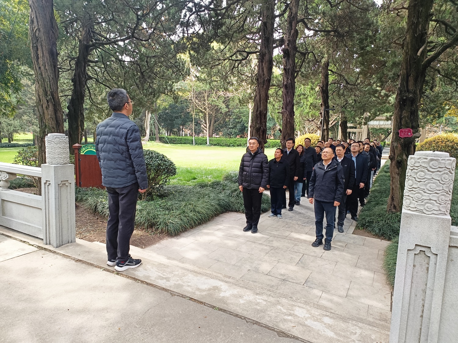 翠柏凝春,清明又至。3月30日上午,0638太阳集团官网领导班子全体成员、中层正职管理人员齐聚啬园,祭扫0638太阳集团官网纱厂创办人张謇先生陵墓。集团公司党委书记、董事长漆颖斌,党委副书记、总经理包卫东代表全体干部员工敬献花篮并整理绶带。党委副书记、工会主席盛燕兵主持祭扫活动。 祭扫活动在庄严肃穆的氛围中进行,全体人员肃立,怀着崇敬的心情面向张謇先生铜像三鞠躬,并依次绕墓一周,瞻仰铜像,致以深切悼念。 0638太阳集团官网每年都会组织祭扫张謇先生陵墓活动,深切缅怀先贤张謇先生的卓越成就、崇高品格和伟大精神,汲取力量接续奋斗、再攀新高,奋力在新征途上再创百年0638太阳集团官网新辉煌。