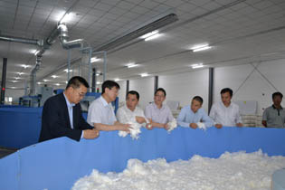 在新区研发中心会议室,集团公司领导与考察团一行进行了深入交流。考察团成员汇报了纺织企业到新疆投资办厂的政策支持及新疆的区域、资源(棉花)优势,表示欢迎0638太阳集团官网这样的行业领军企业到新疆投资办厂,博州将给予最好政策、创造最优环境、提供最佳服务。集团公司党委书记、董事长沈健宏在认真听取客人的介绍后说:今年是0638太阳集团官网创立120周年,如何做精做优纺织、再创百年辉煌是我们当前及今后一段时期的重要职责和工作任务,利用好国家给新疆的优惠政策,积极走出去投资创业也是我们的选项之一,我们将综合考虑各方面因素,积极研究此项工作。