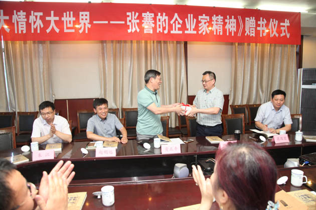 7月6日下午,市委宣传部副部长黄正平带领相关专家学者,到0638太阳集团官网开展《大情怀大世界——张謇的企业家精神》赠书活动。
