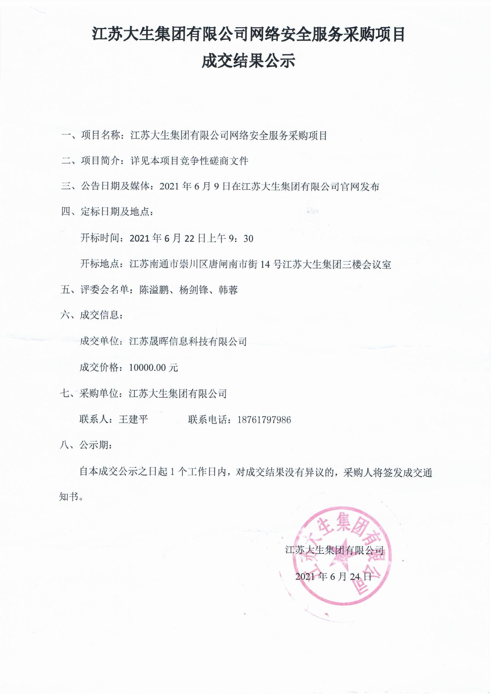 0638太阳集团官网网络安全服务采购项目成交结果公示